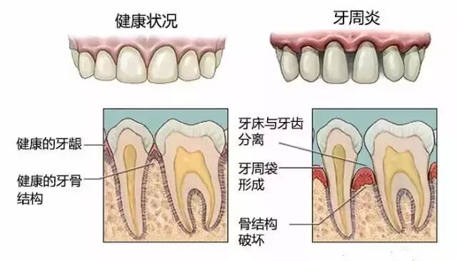 如果唔留意口腔衛生,食物殘渣產生嘅毒素就會慢慢刺激牙龈發炎,頻繁發炎嘅牙龈又會刺激到牙槽骨,發炎嘅牙槽骨慢慢吸收,變得越來越低,包裹佢嘅牙龈又會慢慢萎縮,咁樣暴露係外面嘅牙根就會越來越多,固定佢嘅力量越來越細,牙齒就會慢慢鬆動。