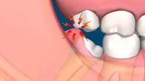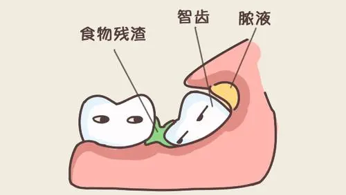 1、智齒因萌出位置不足而導致不同程度的阻生。牙冠部分露出牙齦之外,部分被牙齦包住,齦瓣與牙冠之間形成一箇狹窄較深的盲袋,食物殘渣容易堆積且不易清潔,滯留於盲袋內造成細菌生長繁殖。